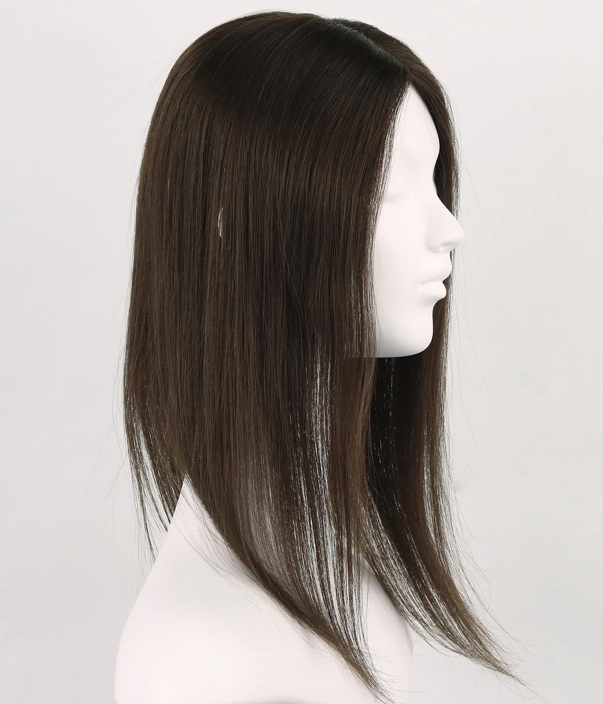 Additionally, this topper features a straight hair wave, offering versatility in styling. You can wear it as it is for a sleek and sophisticated appearance or add curls and waves to achieve a more textured and playful look. The flexibility of this topper allows you to switch up your style effortlessly, enhancing your overall look and confidence.